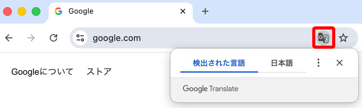 アドレスバー付近に翻訳アイコン(または翻訳案内)が表示される場合はクリックします。